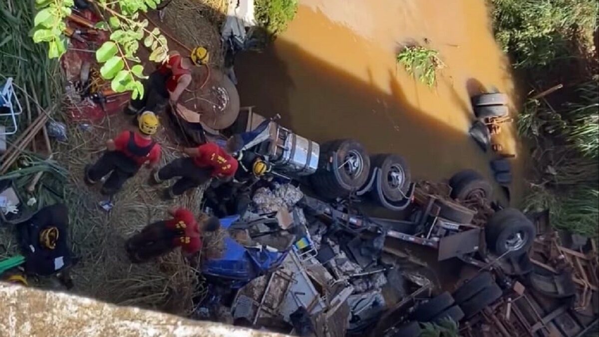 Aos bombeiros, uma testemunha disse que presenciou o momento em que o caminhão saiu da pista e tombou de uma ponte. Contudo, ainda não há detalhes do que pode ter causado o acidente.
