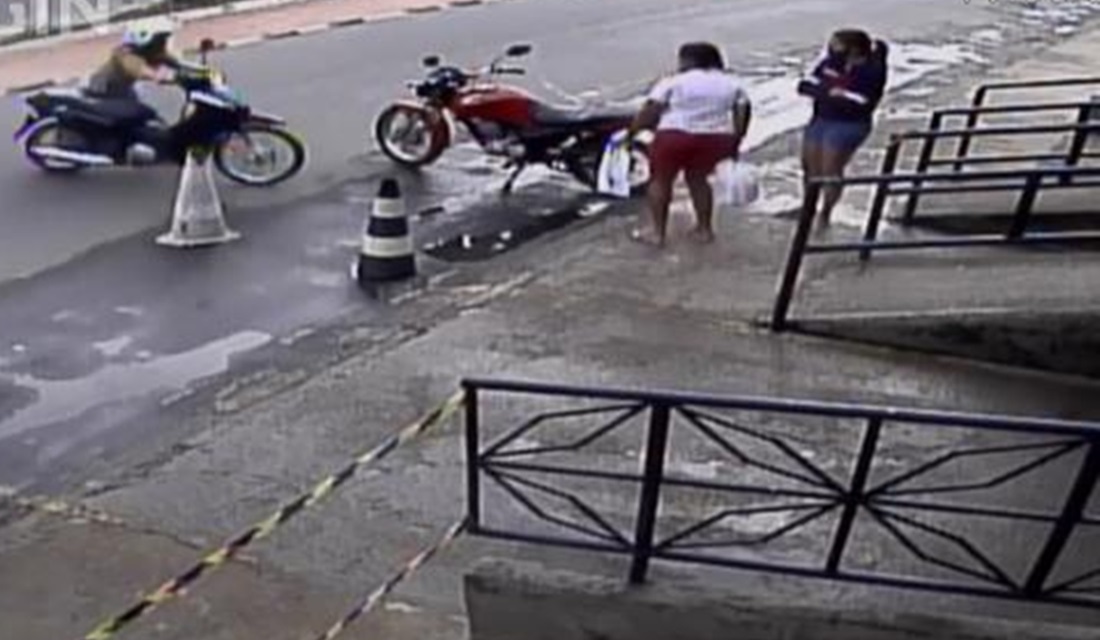 As imagens mostram que a mulher tenta parar, mas a moto desgovernada quase atinge duas pedestres que estavam na calçada do supermercado. As mulheres só não foram atingidas porque se esquivaram. A moto só parou depois de entrar no supermercado. Apesar do susto, ninguém ficou gravemente ferido.