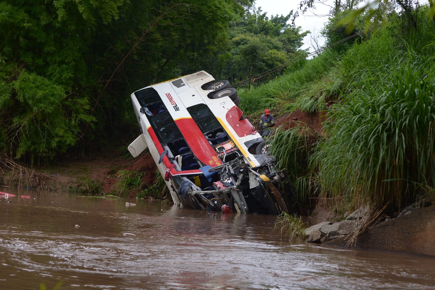 O Corpo de Bombeiros pediu a retirada do ônibus do local do acidente para vasculhar o ambiente e verificar se ainda há alguma vítima na região.