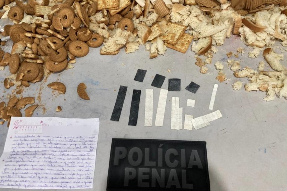 Junto com os itens havia uma carta que seria entregue ao interno. Nela, a mulher fala sobre a droga. Vale citar, o marido dela cumpre pena por roubo na penitenciária.