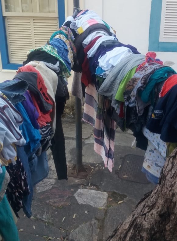 Uma iniciativa solidária do grupo espírita Chico Xavier está dando o que falar na Cidade de Goiás. Desde segunda-feira (21), um varal foi instalado na Praça do Rosário, no Centro, com a seguinte instrução: ‘quem tem põe, quem não tem tira”.