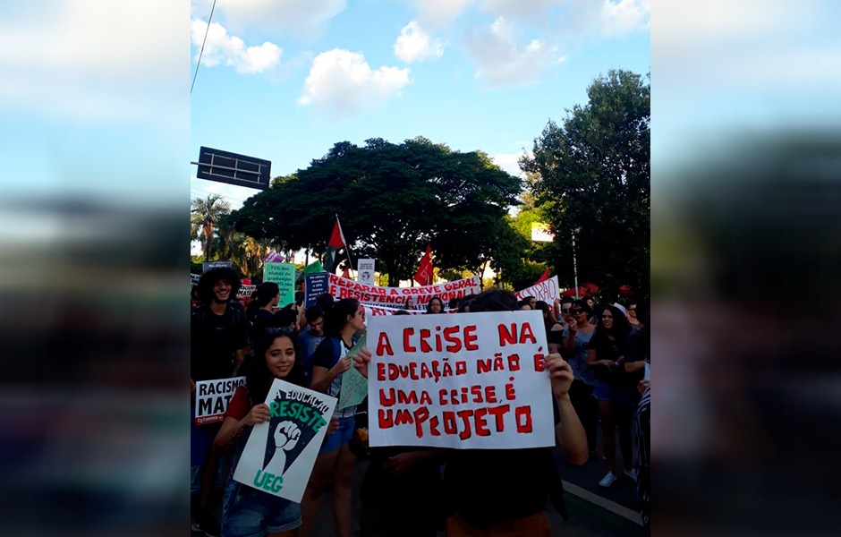 Cerca de 150 cidades de todo o país registraram uma nova manifestação contra o contingenciamento das verbas na educação pública federal. A reforma da previdência também foi pauta levantada nos atos realizados. Goiânia contou com cerca de 30 mil manifestantes, de acordo com a organização, que também confirmou a realização de atos em outras 10 cidades no interior do estado. A Polícia Militar (PM) não divulgou estimativa.
