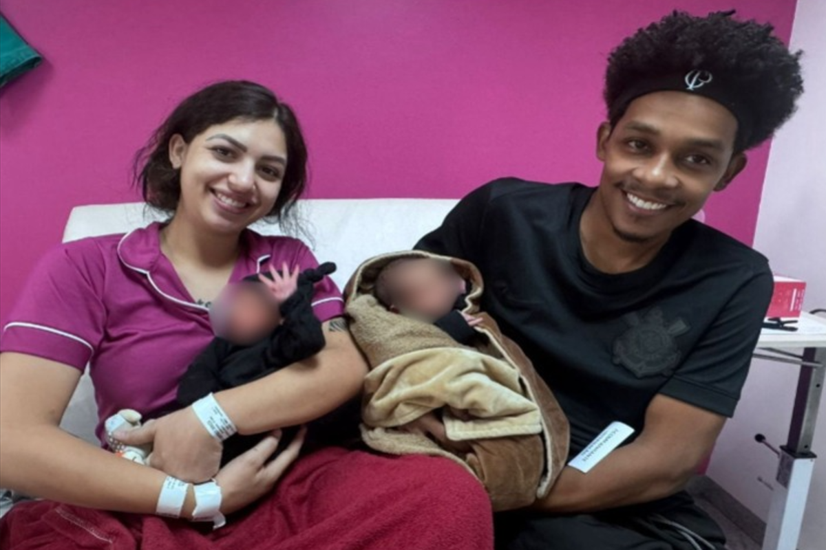 Ela definiu o momento como uma grande surpresa. “Essa experiência foi única, com toda certeza. Além de ser um parto gemelar, ainda ver um bebê nascendo dentro da bolsa amniótica é lindo demais.”