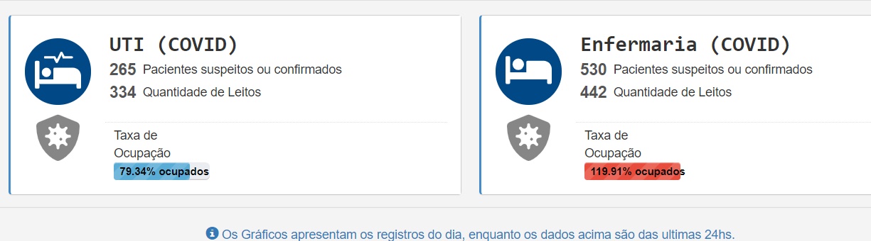 A taxa leva em consideração os leitos específicos para o tratamento da Covid-19 da rede pública estadual