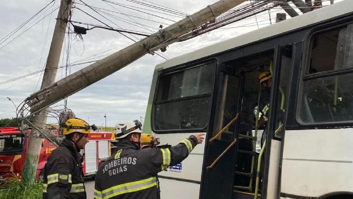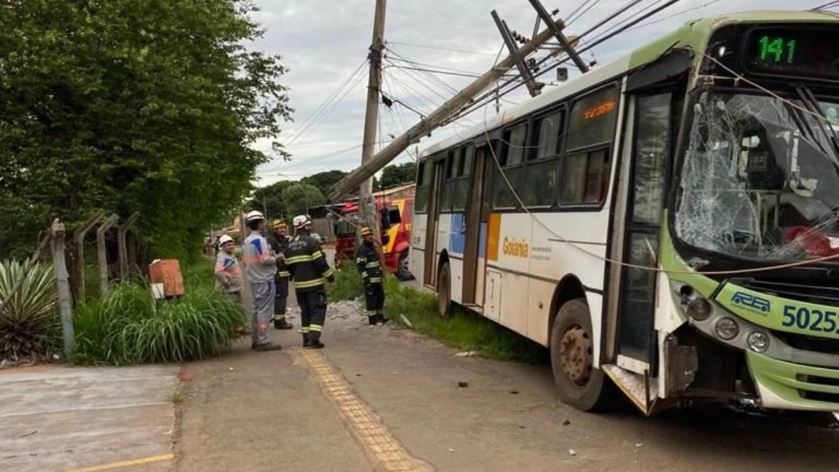Ônibus colide contra poste de energia elétrica em Goiânia