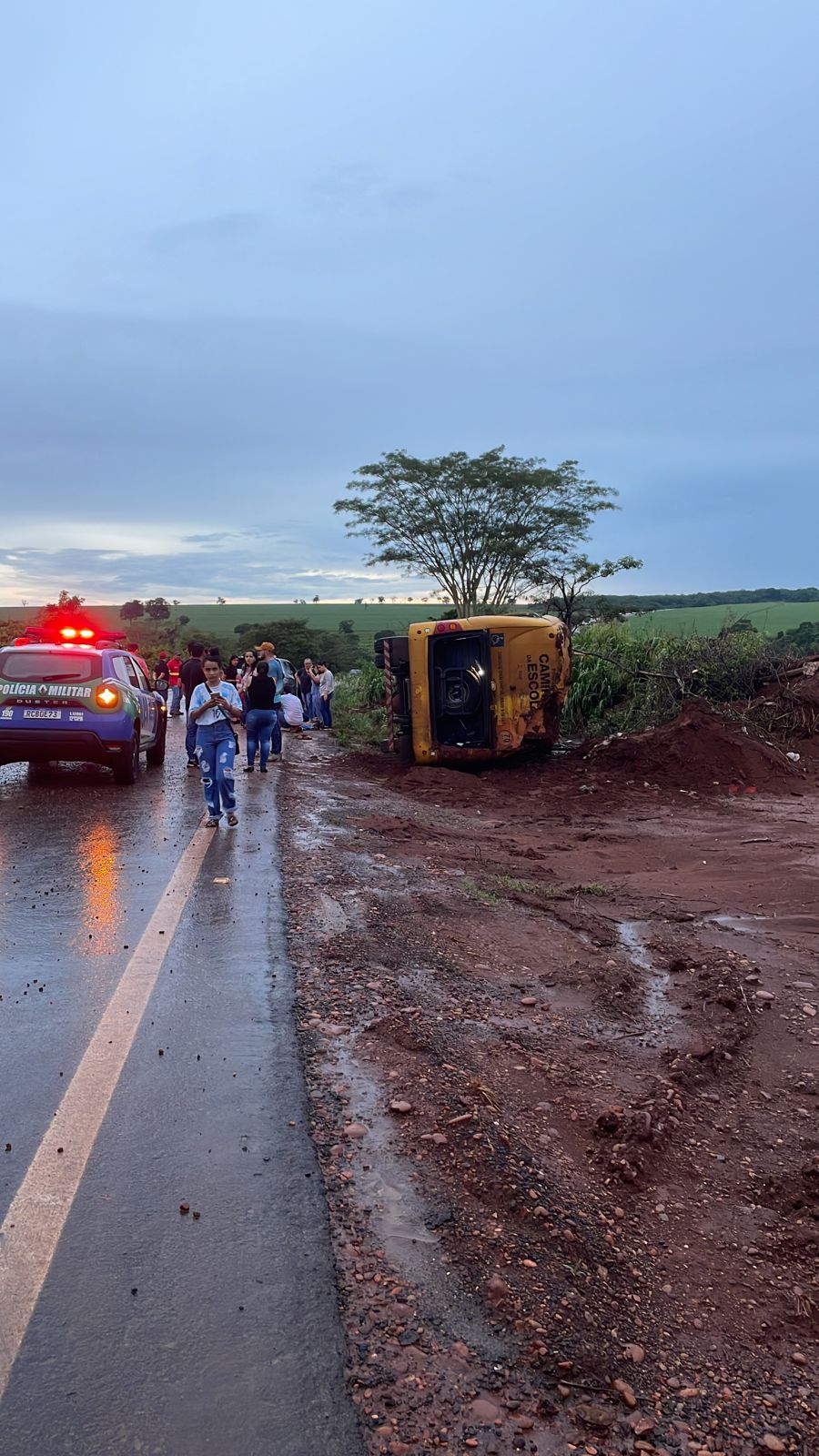Ônibus escolar tomba na BR-364, em Quirinópolis, e deixa feridos