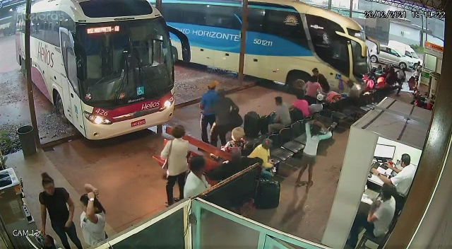 Imagens de câmeras de segurança mostram que, por volta das 18h20 da tarde, um ônibus chegou ao local. Ao invés de parar no box, ele continuou avançando para cima de passageiros que estavam sentados em bancos e só parou ao encostar em um guichê.