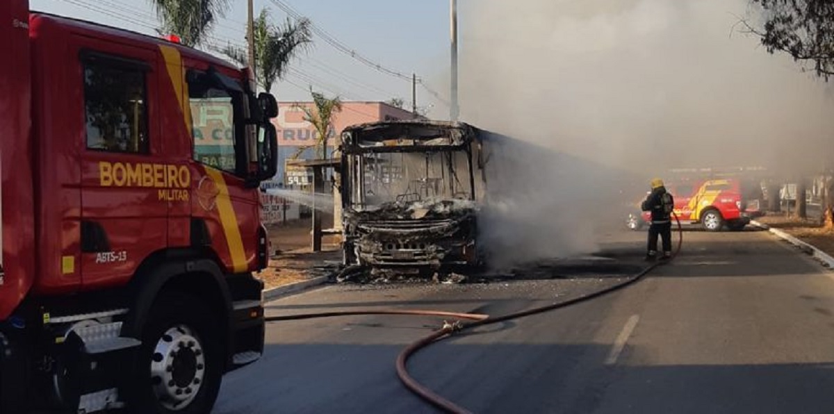 Um ônibus do transporte coletivo pegou fogo na manhã desta segunda-feira (20), em Goiânia. O incidente aconteceu na rodovia GO-040, próximo do Setor Andréia.