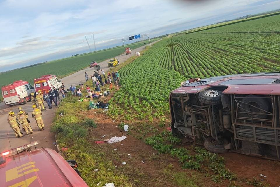 Ônibus tomba e deixa 25 pessoas feridas na GO-436, próximo a Cristalina