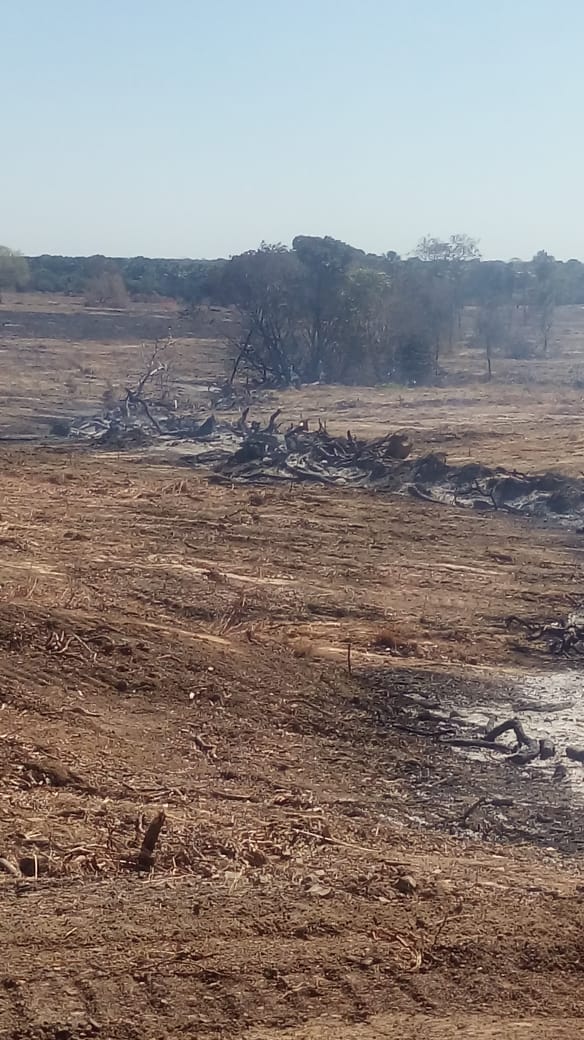 Além das multas, agentes apreenderam quatro tratores de esteira, dois tratores de lâmina, uma escavadeira, duas motosserras e dois correntões, bem como 3.750 estacas da madeira Acapu. No total, 49 propriedades foram fiscalizadas. De acordo com o chefe da unidade técnica do Ibama em São Miguel do Araguaia, Diogo Freitas, em duas fazendas, parte da madeira apreendida ainda era proveniente de compra irregular. Veja foto de parte da área desmatada: