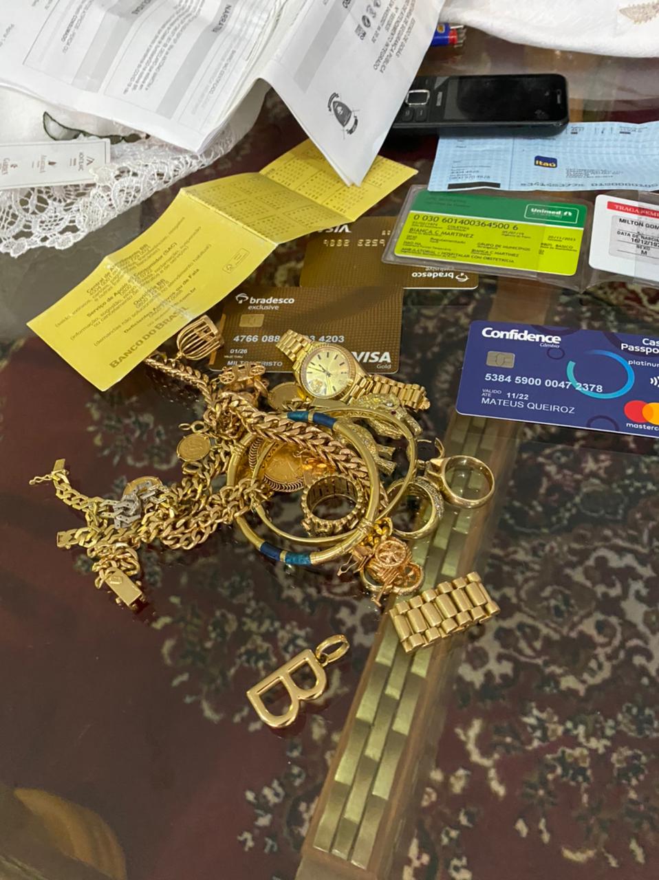Também foram apreendidos dois cheques no valor nominal de R$ 250 mil cada e dois cartões de crédito em nome falso de Mateus Queiroz. O denunciado Milton Gomes apresentou uma Carteira Nacional de Habilitação (CNH) também em nome de Mateus Queiroz, enquanto a mulher utilizava uma Carteira de Identidade emitida no Estado do Pará, em nome de Bianca Martinez.