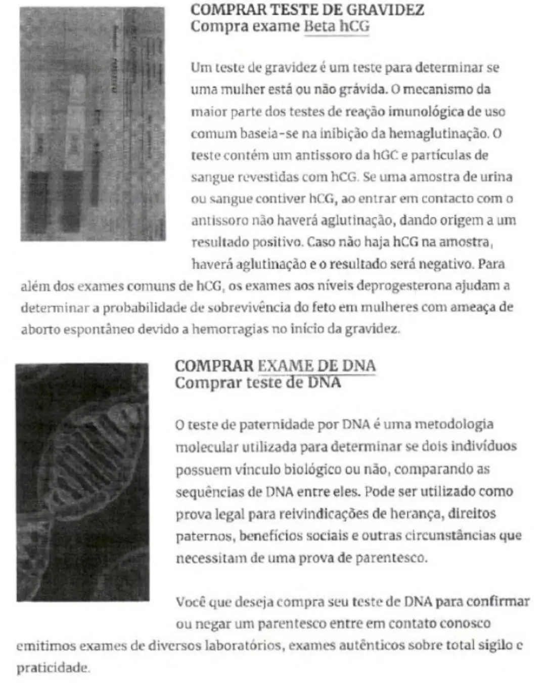 - Exames de DNA