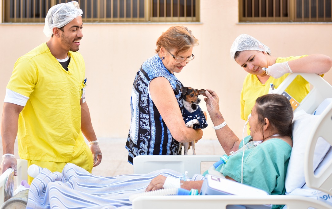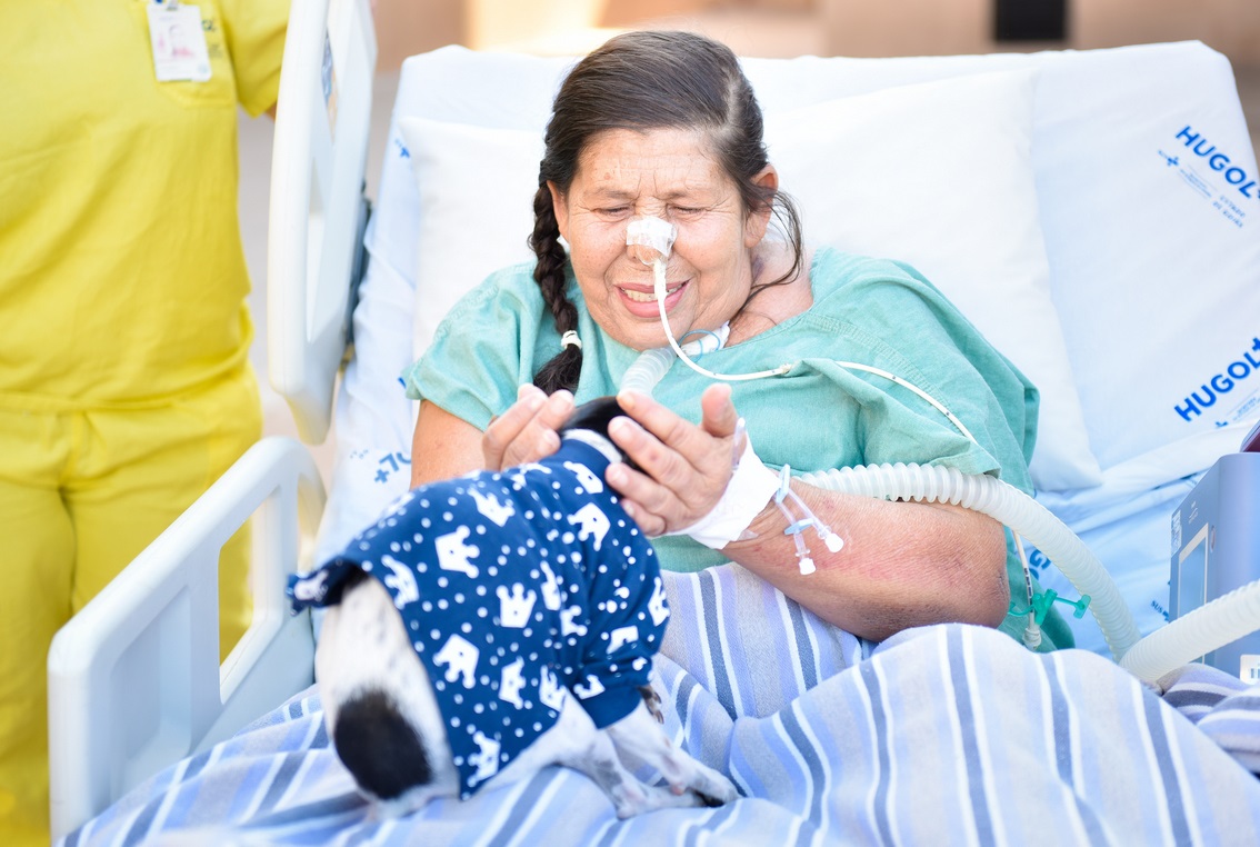 Paciente se emociona ao receber visita do próprio animal de estimação no Hugol