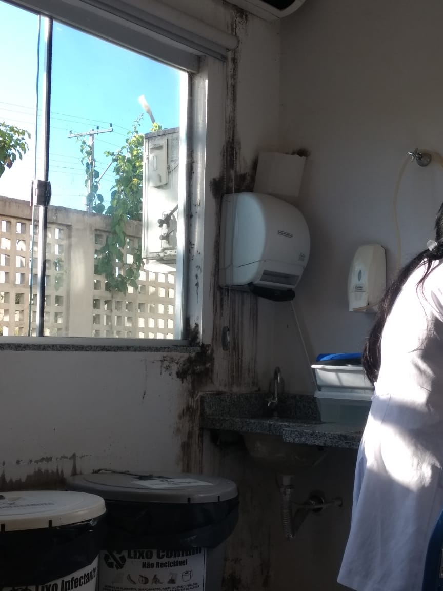 Um paciente, que preferiu não se identificar, disse os vazamentos existem há muito tempo. Ele conta que a unidade foi erguida há seis anos, muito nova para ter tantos problemas estruturais. “Já na recepção, a gente se depara em uma grande mancha de mofo na parede”, relata.