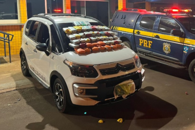 Tráfico Jataí: PRF aborda carro por causa de cadeira de bebê e encontra 52kg de drogas Foram presos um homem de 43 anos e uma mulher, de 22. Eles disseram para a PRF que saíram de Cuiabá e que estavam a caminho de Perolândia há 2 anos