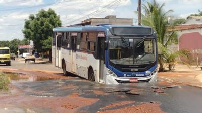 INFRAESTRUTURA Ônibus cai em buraco em asfalto formado por rompimento de adutora, em Aparecida Nas imagens é possível ver grande quantidade de água vertendo no local no momento do incidente há 2 anos