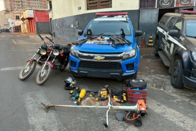 NOITE INTEIRA Criminosos roubam pertences avaliados em R$ 20 mil e mantém mulher em cárcere, em Pirenópolis Equipe do Batalhão Rural resgata vítima, prende um dos criminosos e recupera armas, motocicletas e ferramentas roubadas há 2 anos