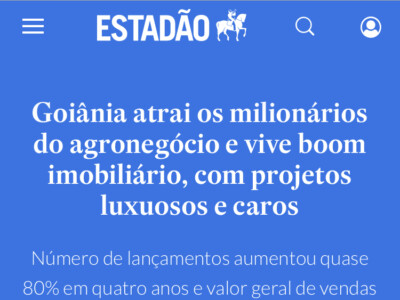 COLUNA DO JOÃO BOSCO BITTENCOURT “Goiânia atrai os milionários do agronegócio e vive boom imobiliário, com projetos luxuosos e caros”, aponta Estadão Reportagem do jornal diz que “número de lançamentos aumentou quase 80% em quatro anos” há 2 anos