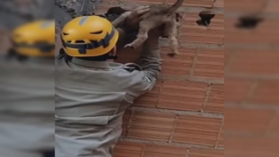 RESGATE Bombeiros resgatam filhote de cachorro preso dentro de muro, em Posse Filhote foi salvo sem ferimentos há 2 anos