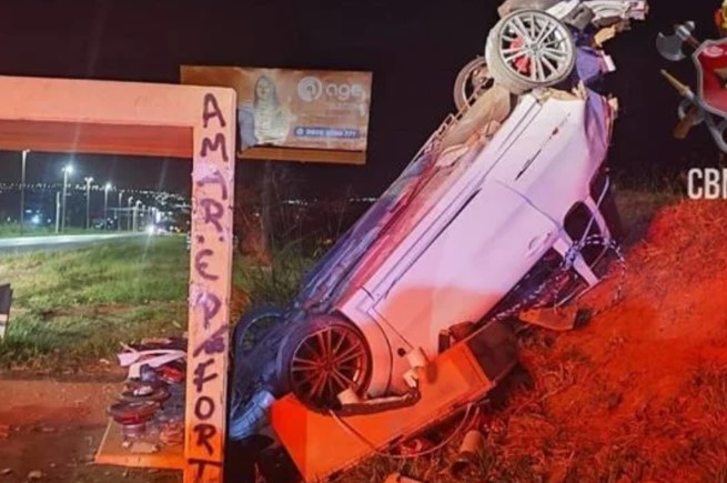 Rodovia Carro fica praticamente em pé após capotar perto de ponto de ônibus no DF Fiat Strada capotou depois de bater em um Ford Fiesta na BR-020, em Sobradinho há 2 anos