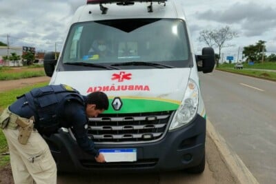 rodovias PRF flagra ambulância de município goiano com as placas encobertas na BR-060 PRF constatou que o mesmo veículo foi autuado três vezes no ano passado por transitar com excesso de velocidade há 2 anos
