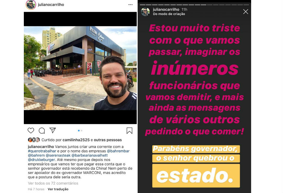 CORONAVÍRUS Dono do Bahrem critica Caiado por fechar comércio: “parabéns, o senhor quebrou o Estado” O empresário Juliano Carrilho, um dos proprietários do bar Bahrem e do restaurante Serena Steak,… há 5 anos