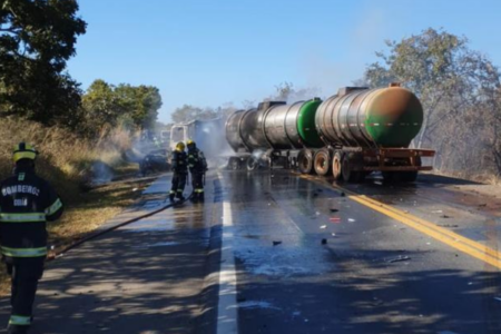 LUZIÂNIA Carro teria feito ultrapassagem e atingido caminhão-tanque em acidente que deixou ao menos um morto na BR-040 A equipe informou que, quando chegou ao local, o incêndio já estava em andamento. O motorista do caminhão conseguiu sair a tempo. há 1 ano