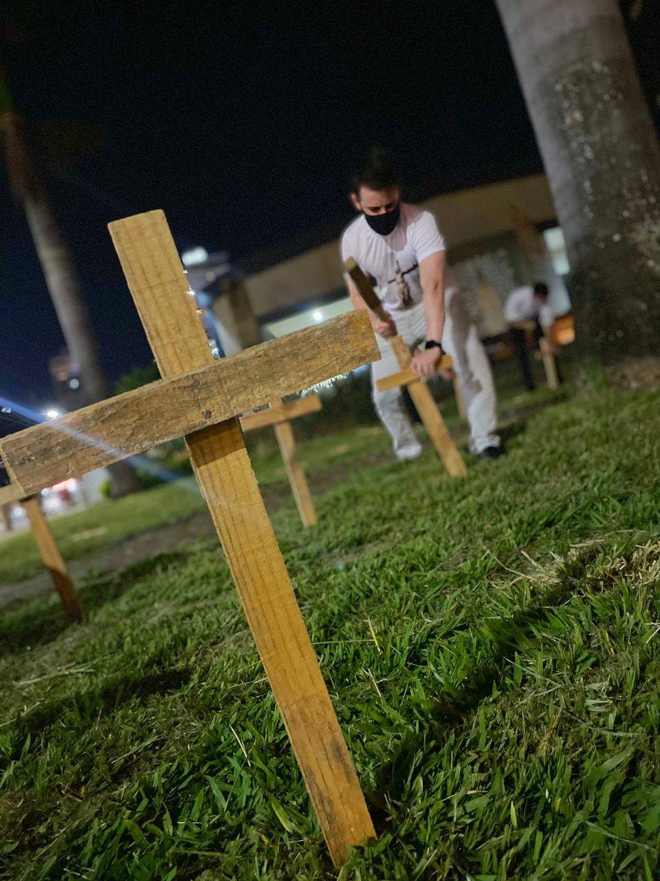Nesta Sexta-feira da Paixão, a Paróquia Nossa Senhora Rosa Mística, no Setor Bueno, em Goiânia, apresenta um memorial dedicado às vítimas da Covid-19. A partir desde as 8h, centenas de cruzes são colocadas no jardim do templo para representar aqueles que não resistiram às complicações da doença.