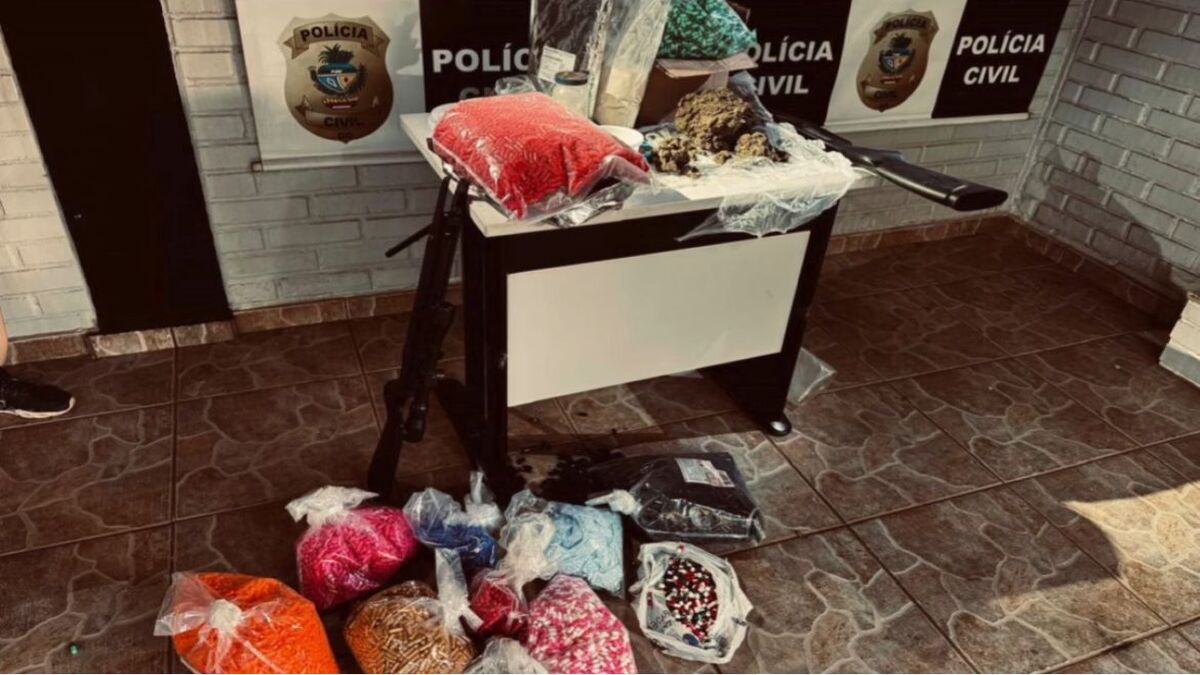 Armas de fogo, uma grande quantidade de entorpecentes e cápsulas para medicamentos foram apreendidos durante a ação