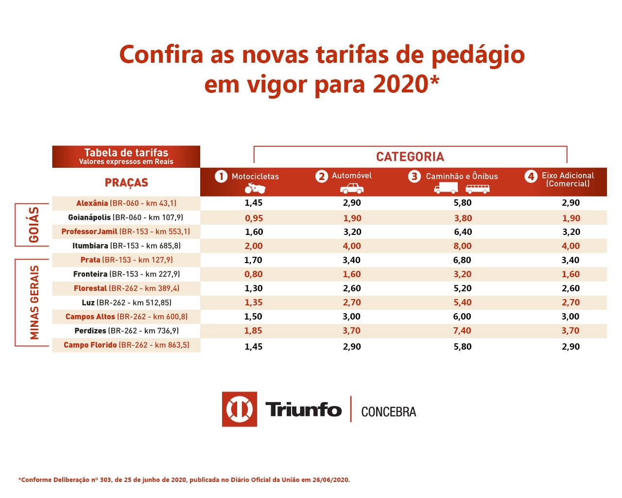 Ao todo, 11 praças geridas pela concessionária Triunfo Concebra, que também administra a BR-262, em Goiás, Distrito Federal e Minas Gerais, sofreram reajuste.