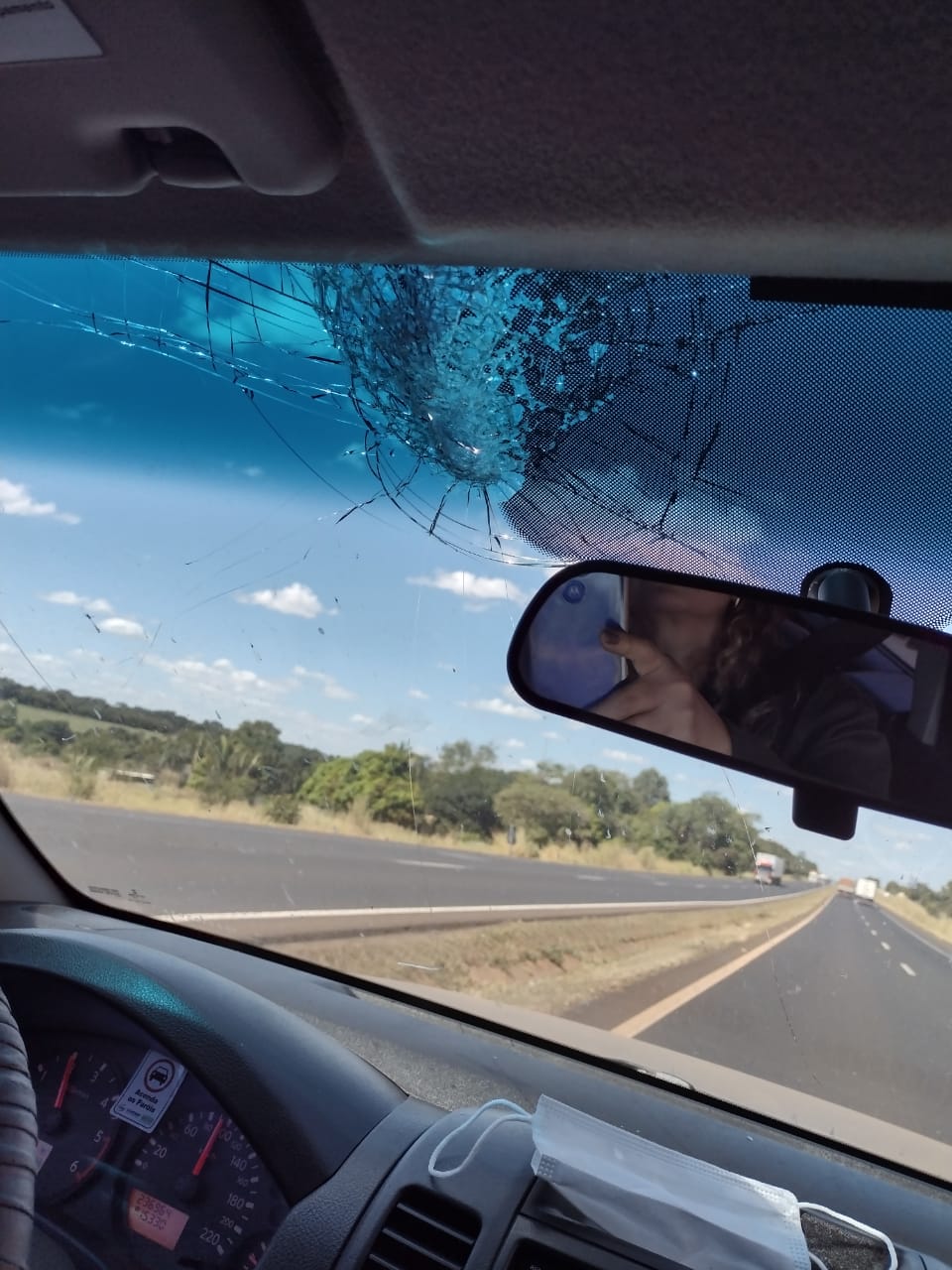 Ao Mais Goiás, ela relatou que era por volta de 12h30 e eles já estavam quase nos limites da cidade mineira, em uma caminhonete Nissan, quando o objeto misterioso os pegou de surpresa. Segundo a goiana, a pedra caiu “em linha reta” direto no para-brisa, fazendo voar cacos de vidro em seu rosto e no do marido.
