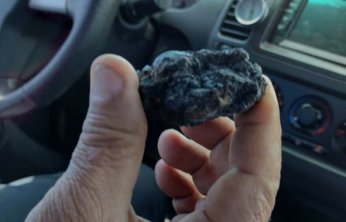 O casal, então, parou o carro e encontrou a pedra, que estava quente. A mulher, que disse ter estranhado o fato por não haver nenhum caminhão próximo que pudesse ter soltado o objeto em cima deles, não soube precisar o peso, mas destacou ser bastante pesado.