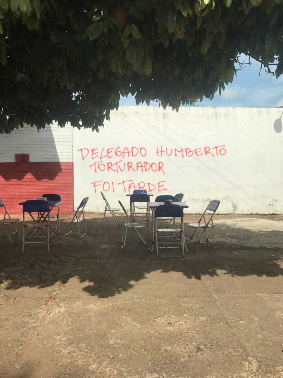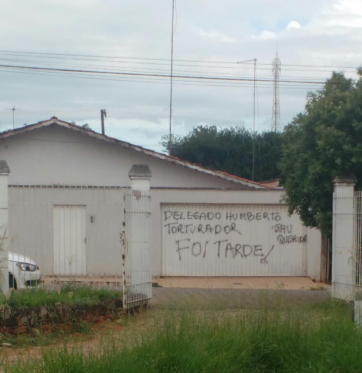 “Tchau querido”, “foi tarde”, “torturador. A cidade de Inhumas, que sedia um embate entre agentes políticos e entidades representativas da Polícia Civil, amanheceu pichada nesta sexta-feira (16). Os dizeres marcados nos muros da cidade celebram a remoção do delegado Humberto Teófilo, titular da delegacia da cidade, que agora deverá prestar serviços na Delegacia Estadual de Investigação de Homicídios (DIH) ou na Central de Flagrantes, em Goiânia. As pichações ainda tacham o delegado de “torturador”. Segundo ele, as “mensagens” foram escritas em frente à delegacia onde ele trabalhava, no muro do estádio e na pecuária da cidade.