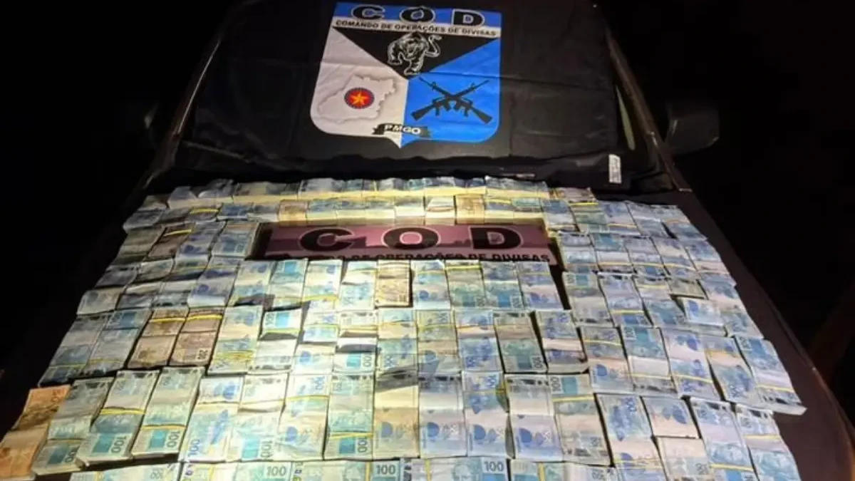 A ação foi conduzida pela Polícia Militar, por meio do Bope e do Comando de Missões Especiais (CME), em conjunto com a Polícia Civil (PCGO). Durante a abordagem, os agentes também encontraram comprovantes de outros saques que, somados, chegam a R$ 1 milhão em espécie.