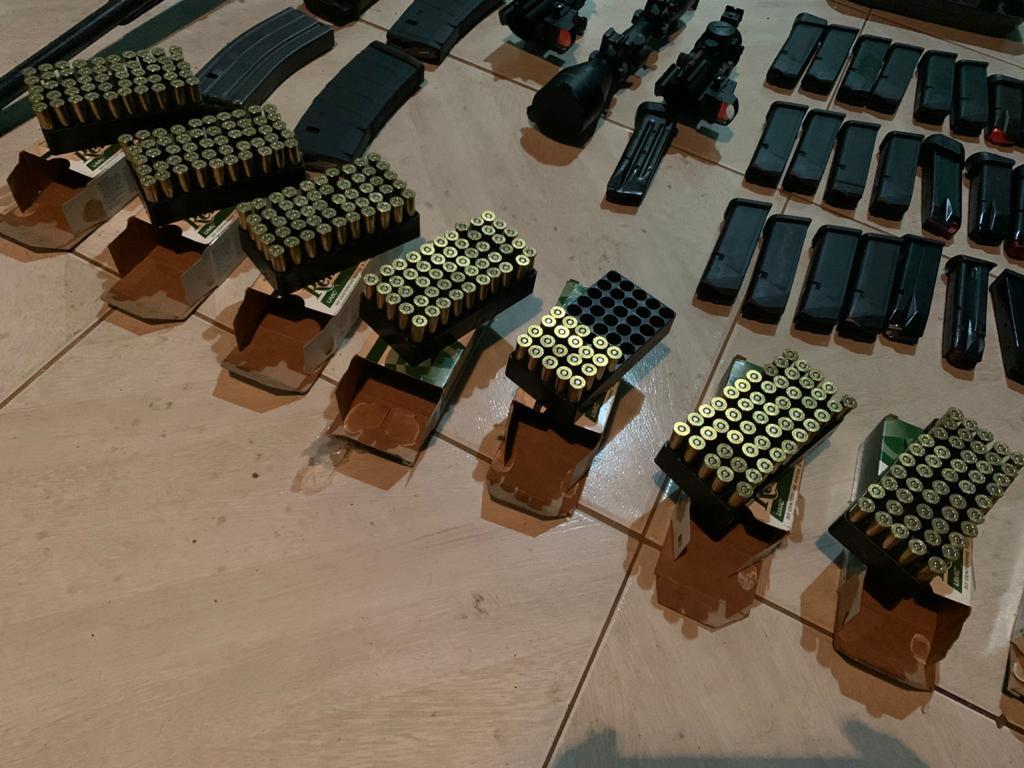 Dentro da casa dele, os policiais encontraram um verdadeiro arsenal, com 398 munições, quatro carregadores para fuzil, 30 carregadores de pistola, um fuzil calibre 7.62 equipado com tripé e mira holográfica, uma espingarda calibre 12, uma carabina calibre 44, um rifle calibre 22, e uma pistola calibre 380. As armas, carregadores, munições e o preso durante a operação foram encaminhados para a Central de Flagrantes.