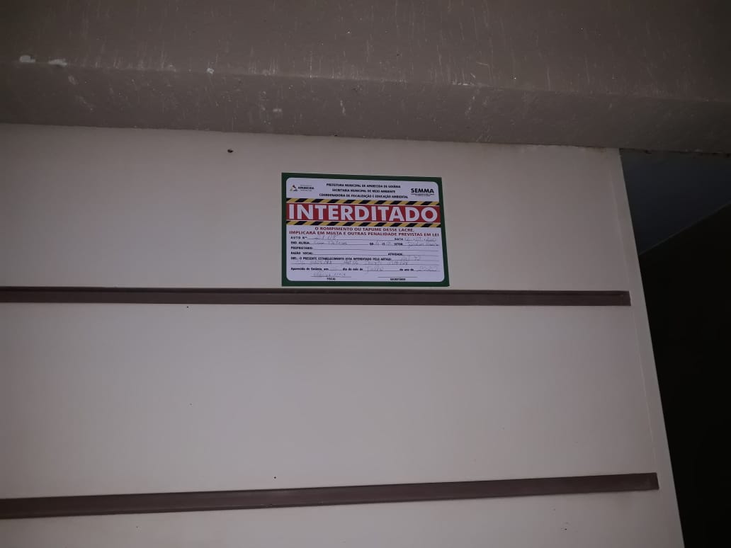 A chácara já havia sido notificada em menos de um mês e, agora, multada foi em R$ 10 mil por reincidência e descumprimento de interdição.