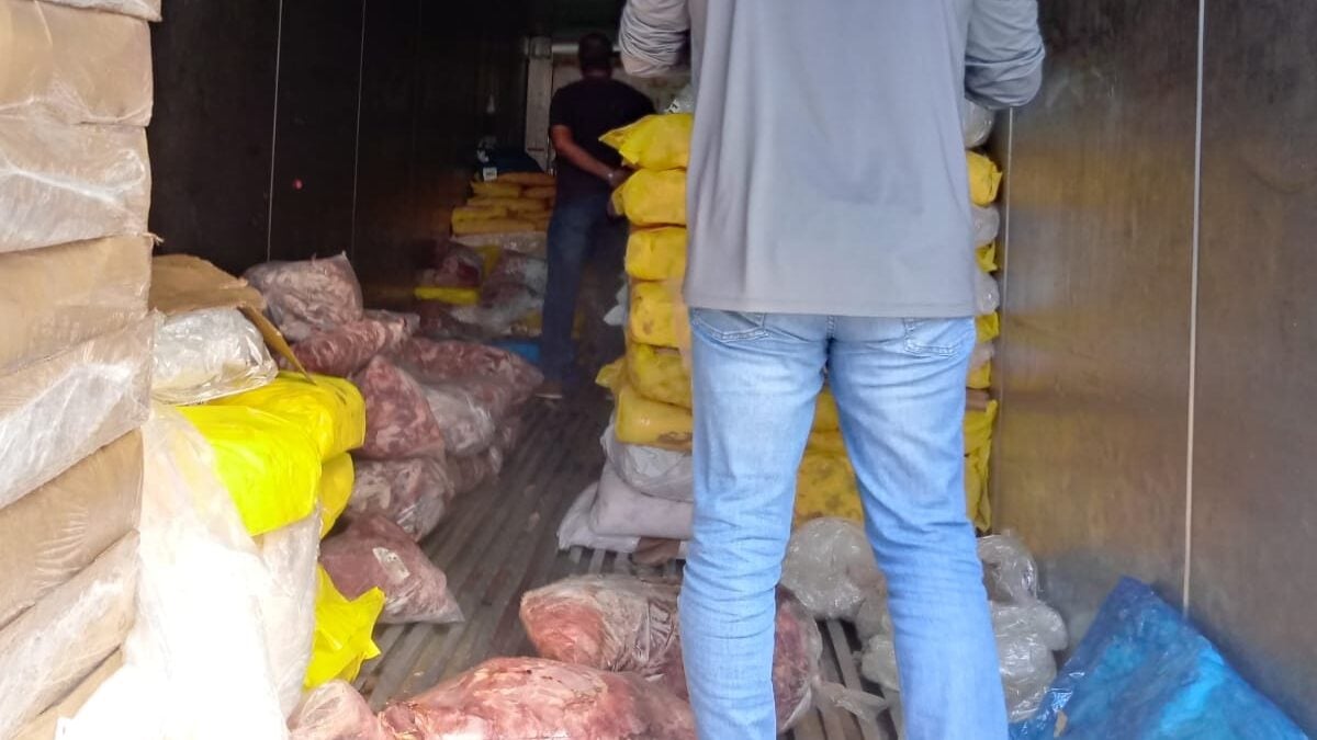 No local, as equipes encontraram um container armazenando carnes em péssimo estado de conservação e com várias moscas em seu interior. Os produtos estavam acondicionados de forma inadaqueda, segundo a Polícia Civil.