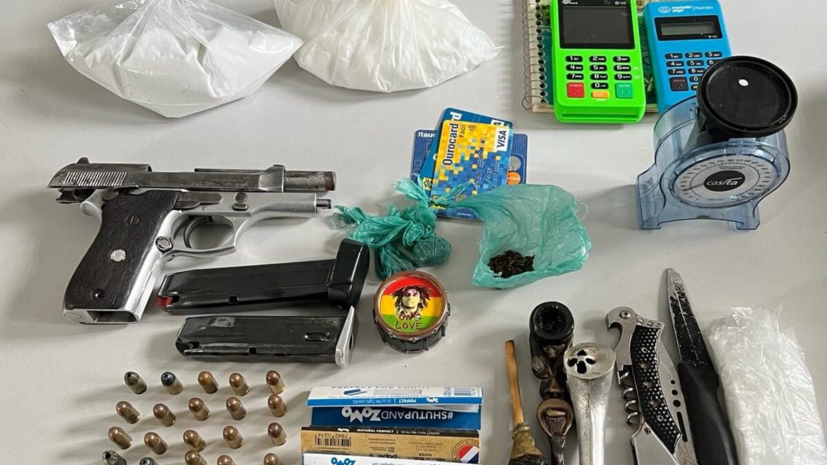Segundo Grupos de Investigação de Homicídios e de Repressão a Narcóticos de Planaltina, os policiais apreenderam no imóvel uma arma de fogo PT58, 30 munições calibre .380, dois carregadores, cerca de 518g de substância semelhante à cocaína pura, além de 8g de substância semelhante à maconha. No local, os agentes também encontraram uma balança de precisão, cadernos com anotações típicas da traficância e outros objetos.