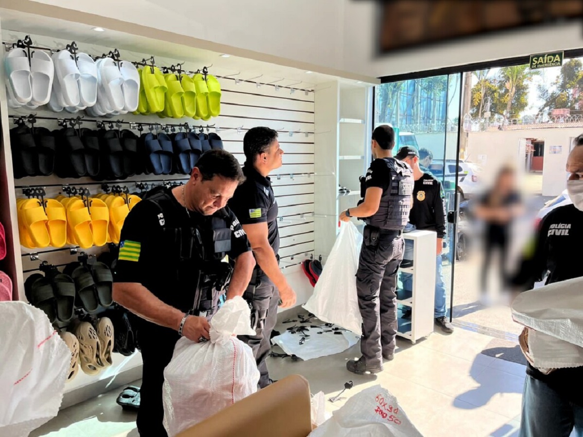 Polícia Civil apreende 2 mil pares de sapatos por suspeita de falsificação, em Caldas Novas
