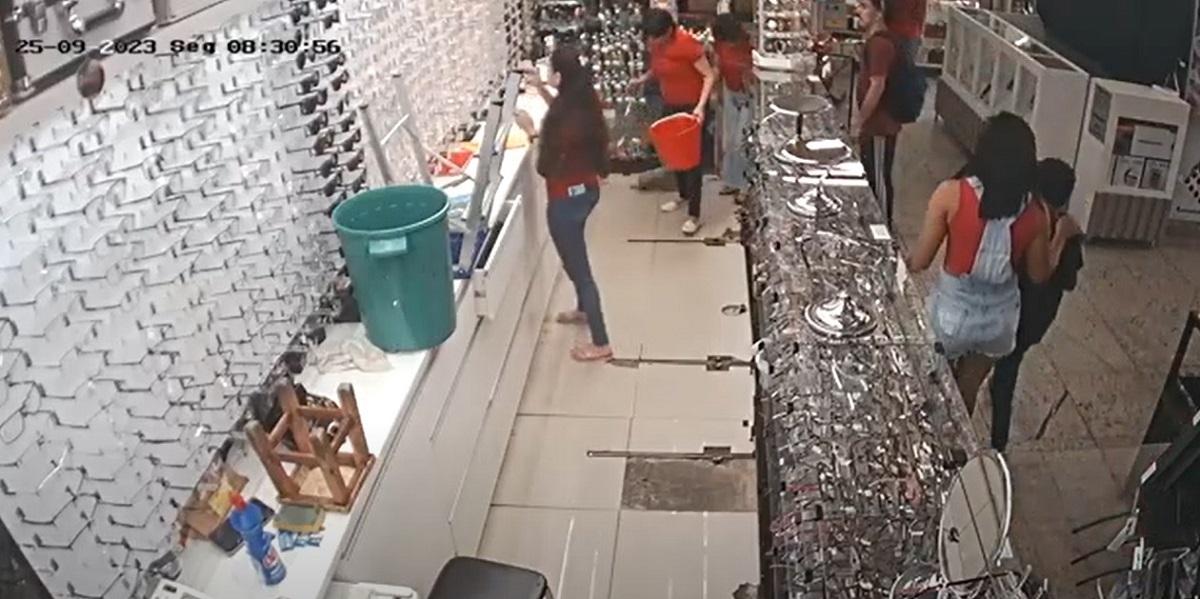 As imagens de câmera de segurança mostram o momento em que o garoto de programa olha relógios expostos em um mostruário de uma loja localizada no Camelódromo de Goiânia. Ele conversa com uma atendente, que entrega uma das mercadorias a ele.