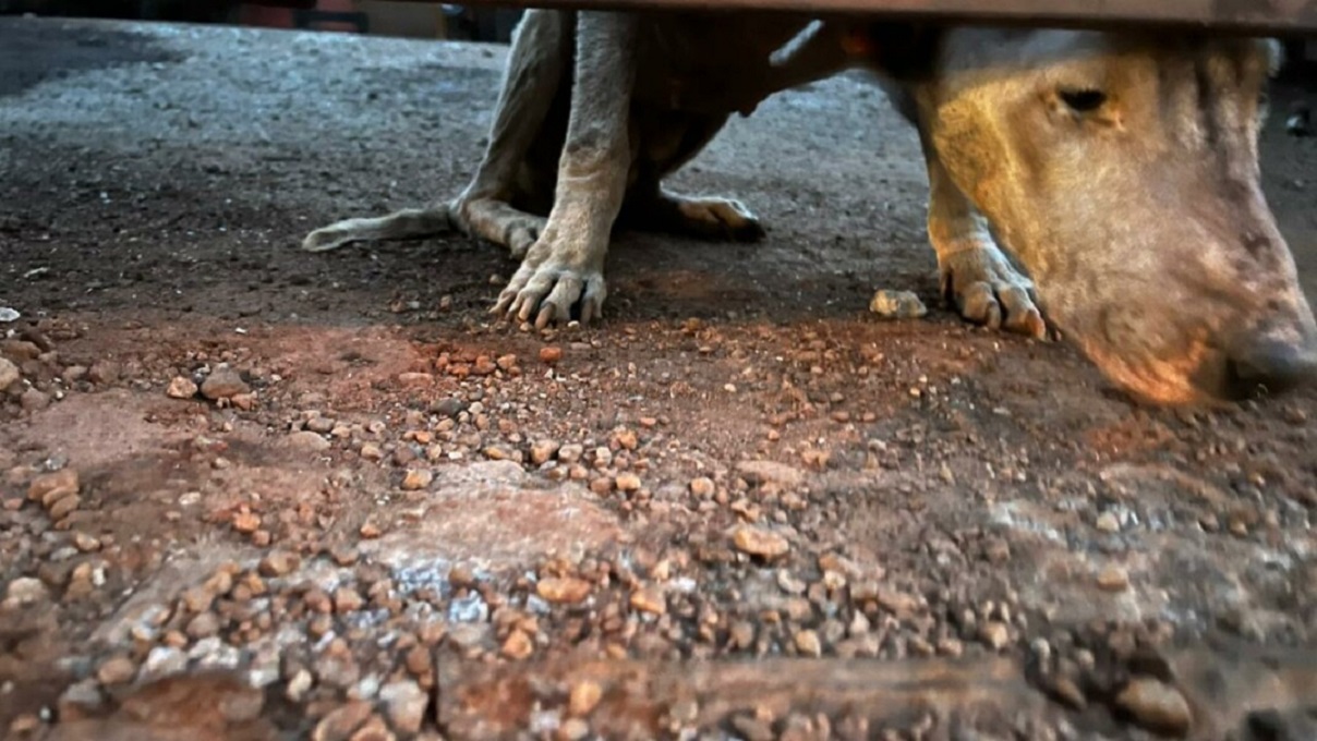 Policiais encontraram a cadela em situação de extrema magreza, provável anemia, mucosas descoradas e risco de morte