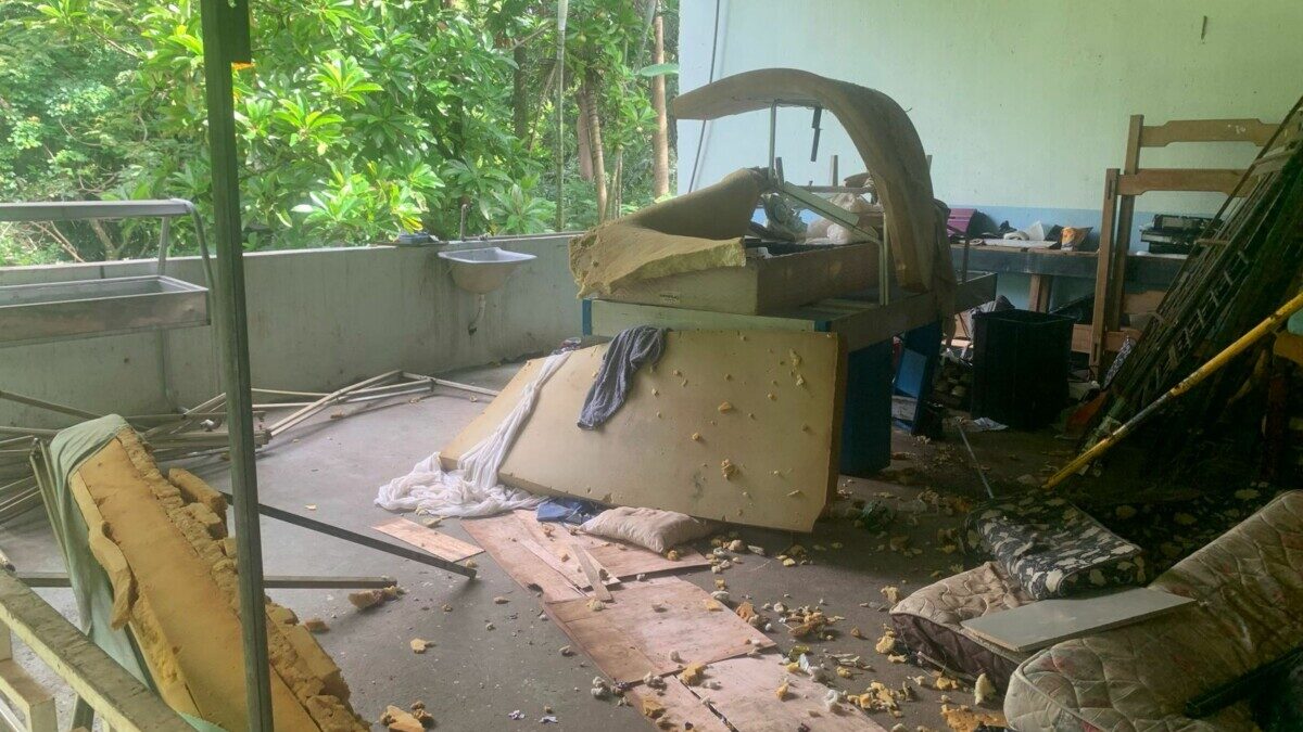 Fotos mostram que o local havia colchões e madeiras espalhadas, o chão tinha aspecto de sujeira, a cozinha era inadequada