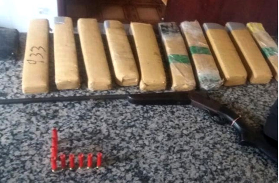 Segundo informações da PM, foram encontrados na residência quatro indivíduos e com eles uma espingarda calibre 36 com três munições deflagradas e seis intactas. Após busca domiciliar foram descobertos ainda 10,5 quilos de tabletes de maconha.