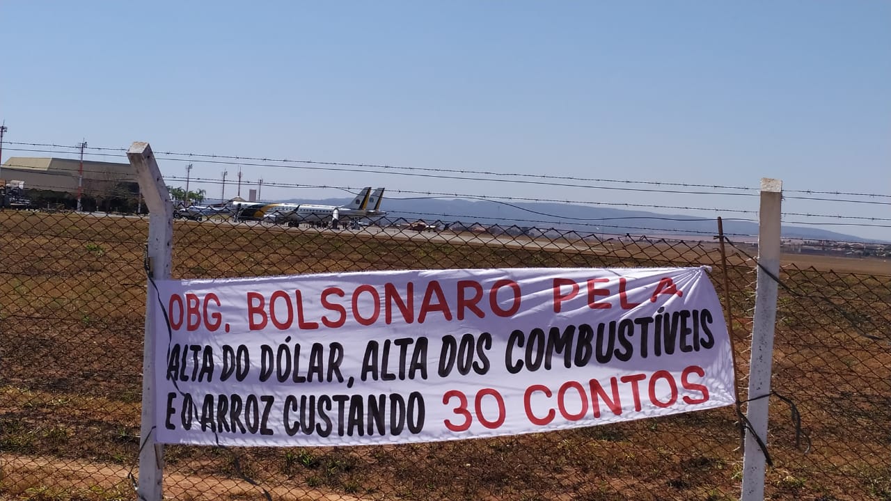 Após a passagem de Bolsonaro, as faixas foram afixadas no aeroporto de Caldas Novas.