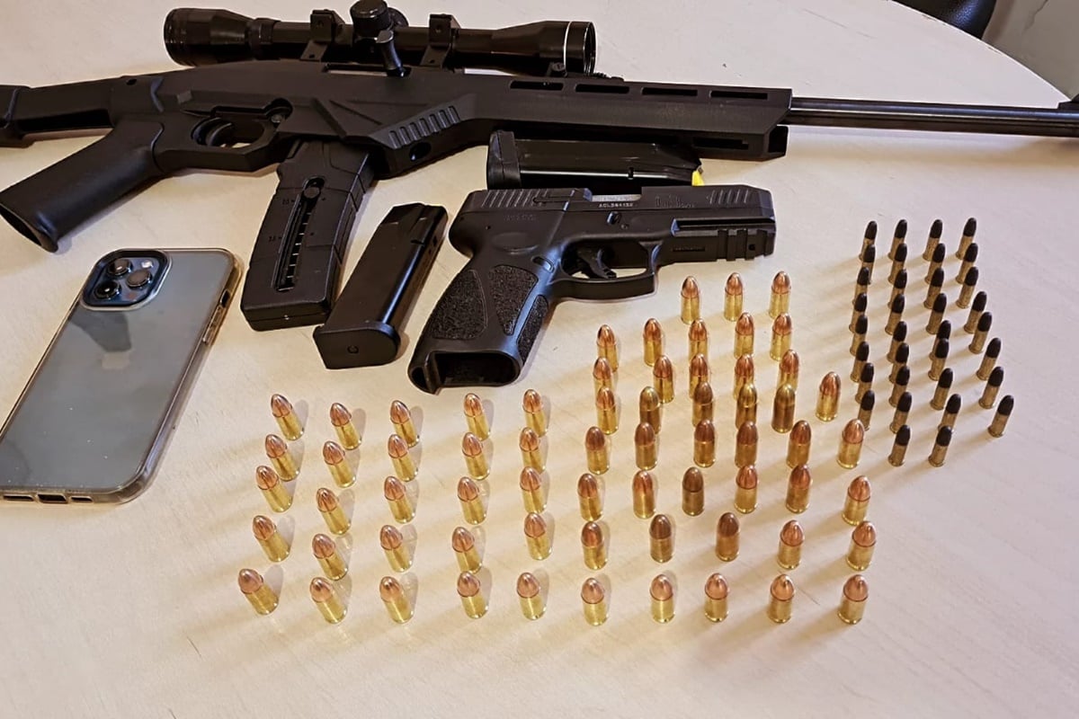 Na ocasião, os agentes também cumpriram um mandado de busca e apreensão na casa do suspeito. No celular do homem os agentes encontraram uma foto com cena pornográfica da vítima. Durante as buscas, os policiais também apreenderam uma pistola, um rifle, 33 munições calibre .22LR e 66 munições calibre 9mm. Nenhuma delas era legal.