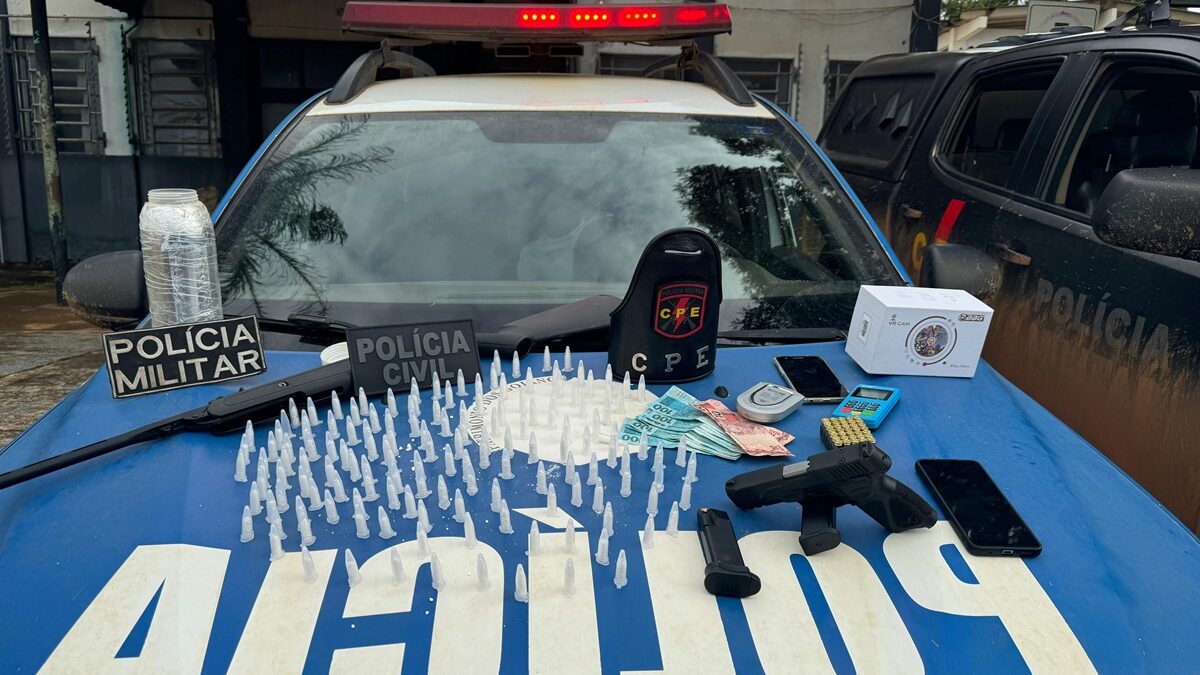 Agentes encontraram 150 pinos de cocaína, além de dinheiro em espécie e armas
