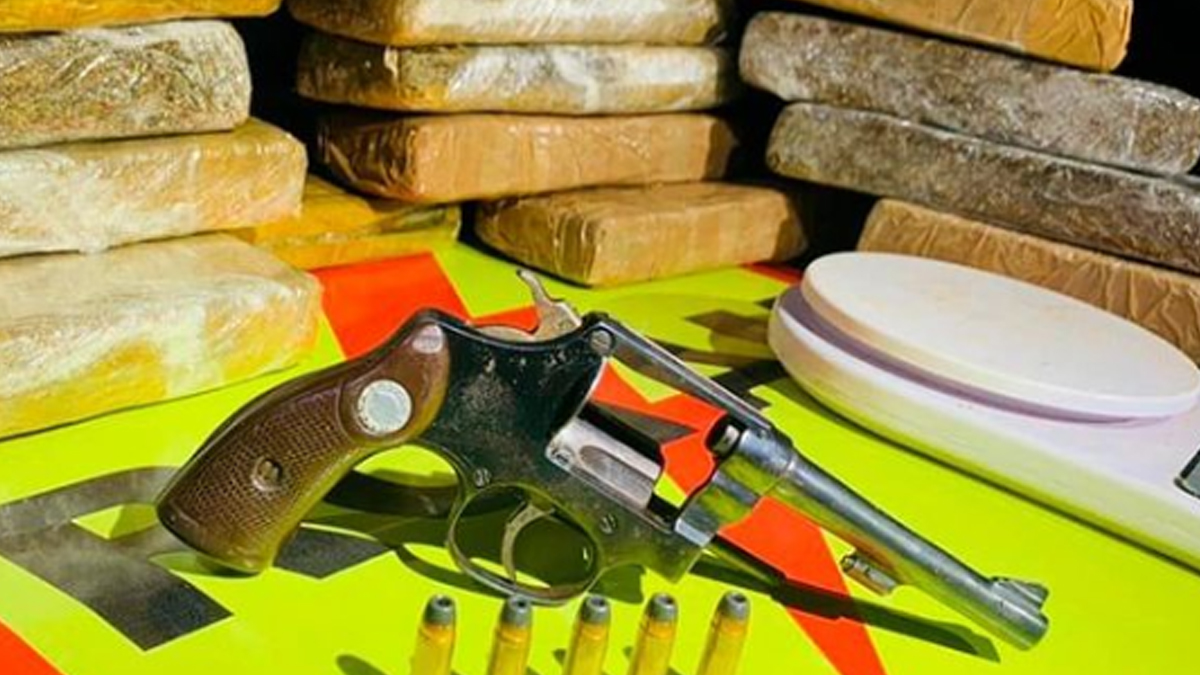 Após receberem a informação, os policiais foram até o local e abordaram o suspeito. No local, eles encontraram 20 quilos de maconha e um revólver calibre 32. com cinco munições intactas. Além disso, apreenderam, ainda, R$ 620 que seriam do tráfico e uma balança e precisão.