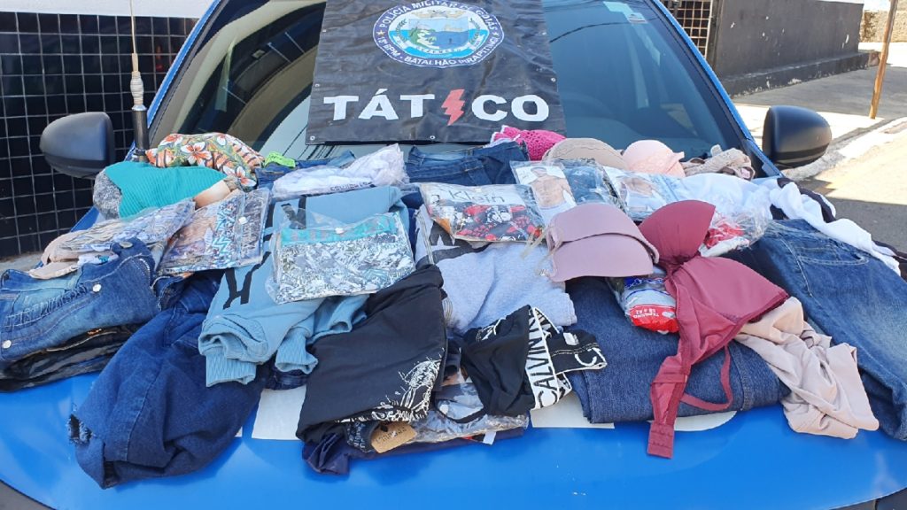 Após identificar os suspeitos, a polícia realizou buscas na região e os localizou em uma residência do bairro São José, onde algumas das peças de roupas também foram encontradas. Ao ser presa, a dupla confessou que vendeu parte dos produtos por R$ 40 para uma mulher e informou o endereço da receptadora.