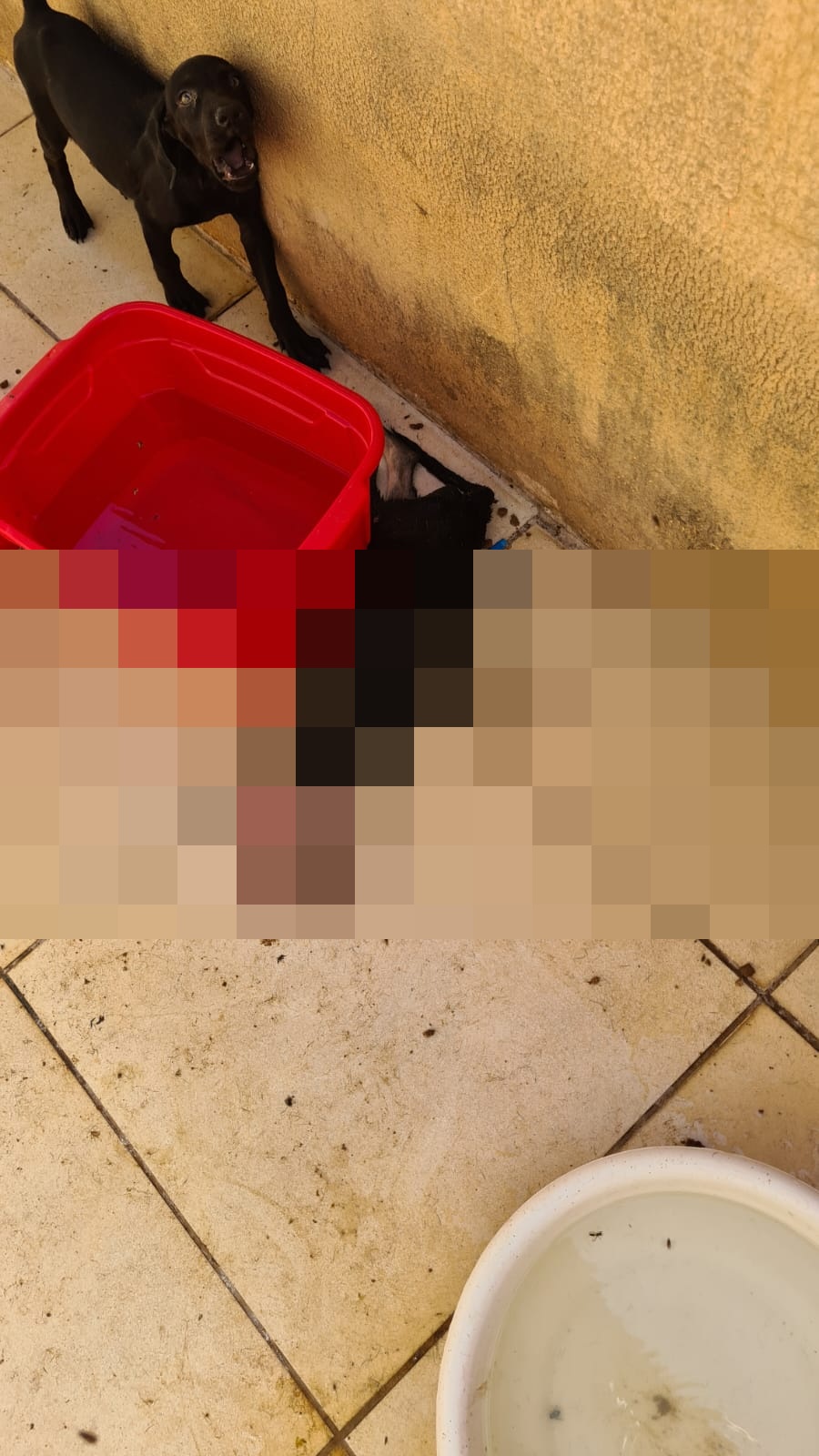 Os policiais chegaram à residência após denúncia. No local, foram encontrados 16 cães, sendo 12 adultos e 4 filhotes, um deles morto. Os animais estavam em ambientes sujos de fezes. A ração estava misturada com as fezes e o local não tinha cobertura para proteger os cães das condições climáticas.