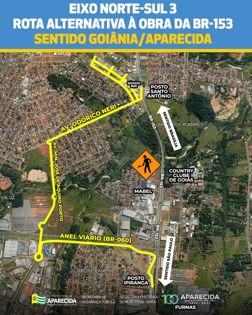 A prefeitura de Aparecida e a Triunfo Concebra firmaram um acordo para que a Administração Municipal reforce a sinalização das rotas alternativas ao BR-153 que passarem no perímetro urbano da cidade. O objetivo é evitar acidentes e congestionamentos na rodovia.